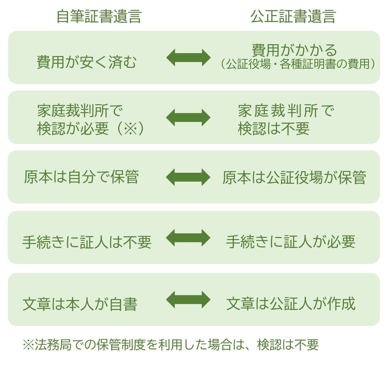 自筆証書遺言と公正証書遺言では、それぞれにメリット・デメリットがあります。